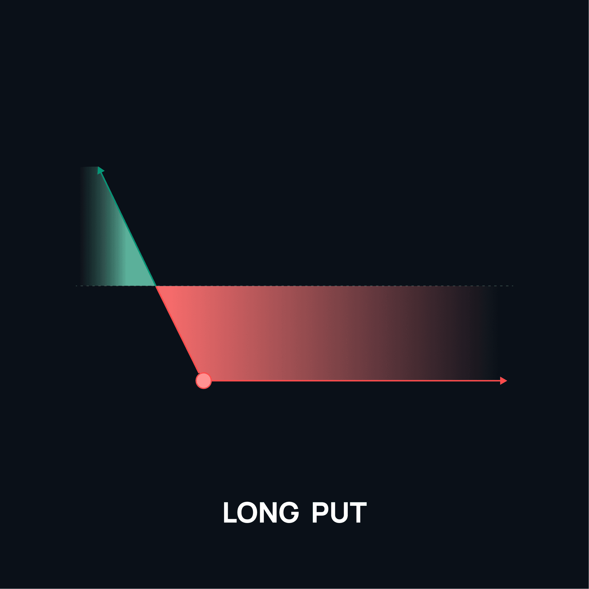A long put gives the buyer the right to sell an asset at the strike price. It profits if the asset price drops, and the loss is limited to the premium paid.Profit = max(0, Strike Price - Price at Expiration) - Premium PaidExample: You buy a put on Ethereum with a strike price of $2,000 and pay a $100 premium. If Ethereum falls to $1,500, your profit is $2,000 - $1,500 - $100 = $400.