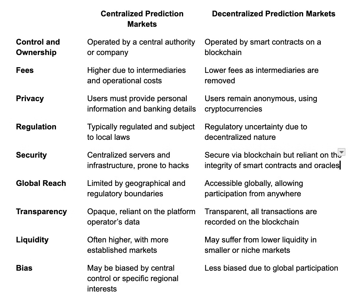 Lower Fees: Without the need for intermediaries or centralized platforms to take a cut, decentralized prediction markets often have lower transaction fees, making them more cost-effective for participants.
